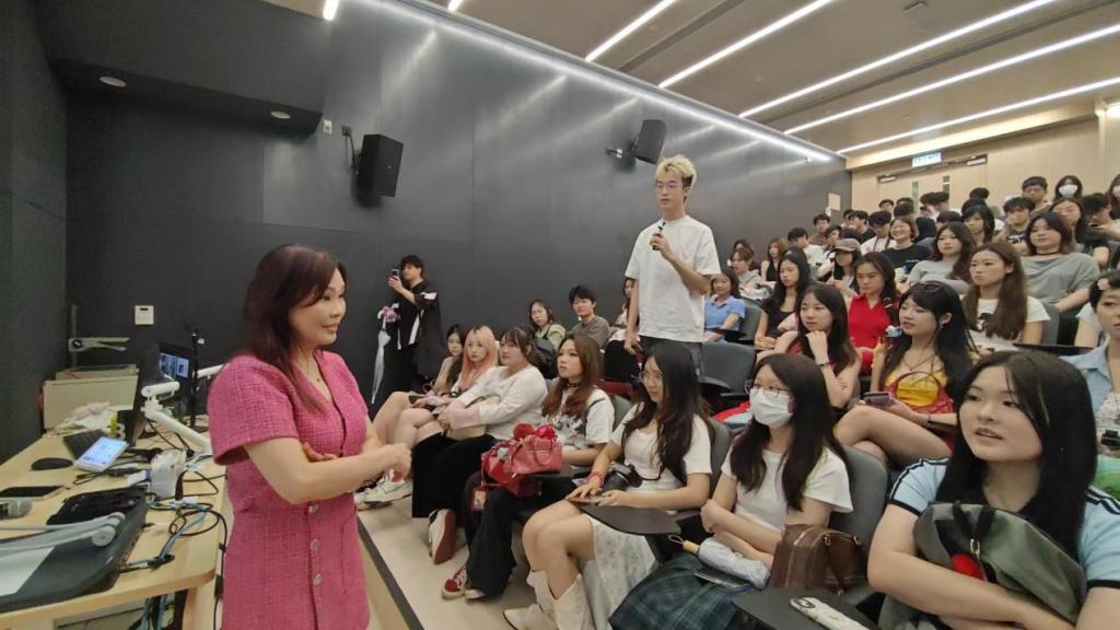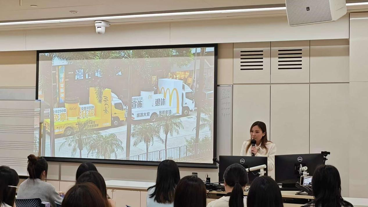 次日清晨,师生跨越福田口岸抵达香港,走进亚洲顶尖学府香港浸会大学。该校传理学院教授以“香港传媒业的全球化角色”为题,梳理了从传统报业到数字媒体的转型历程,并指出“跨文化传播需兼顾本土叙事与国际表达”。广告行业专家Bonnie Chow解析了文化符号的转译与传播策略,令学生深受启发。工商管理学院教师则聚焦港澳名校升学路径,为有志深造的学生揭开申请“面纱”。