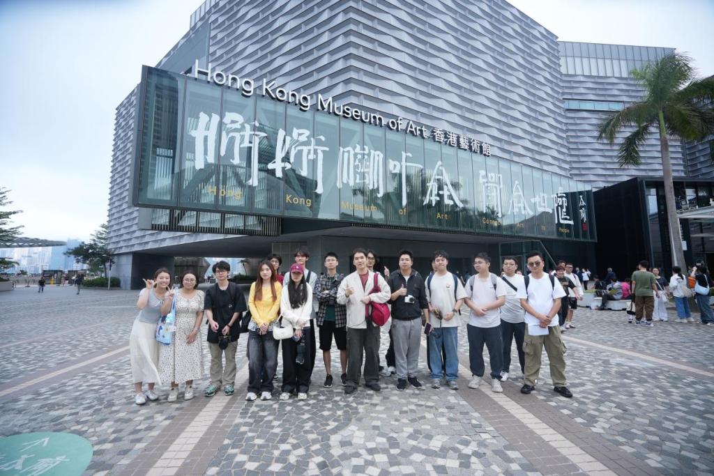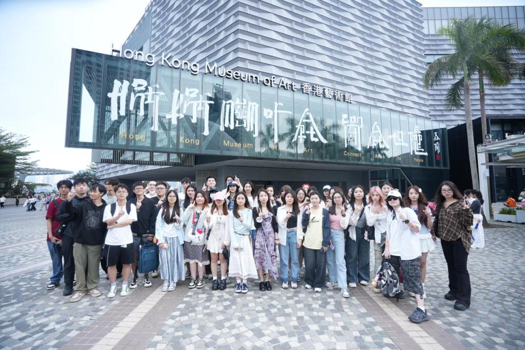 师生走进香港艺术馆,开启一场艺术与灵感的对话。从明代青花瓷的东方美学到当代艺术家草间弥生的波点世界,多元展品为学生们提供了跨时空的审美体验。1班学生在尖沙咀星光大道开展“媒介叙事实践”任务,以短视频记录香港电影文化的符号——手印、铜像与维港夜景。学生小组尝试将经典电影台词与城市景观结合,探索“怀旧IP的年轻化表达”。