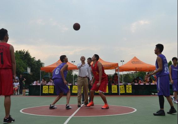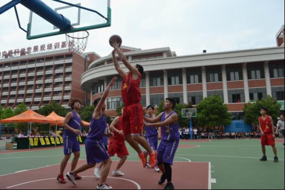 在学工助理列柏洪老师致词后,全明星赛的序幕正式拉开。系主任王克军教授进行了开球仪式,两只球队开始了激烈的比赛。场上两队竞争激烈,红队激情四射,紫队斗志昂扬。观众们不断地为他们呐喊、助威。开场不久,红队的技术优势体现,将比分一度领先,但蓝队也不甘示弱,奋起直追,将比分不断的拉近。在每一节比赛后都穿插了歌唱表演,缓解现场紧张的气氛。当比赛接近尾声之时,两队的对碰更为激烈,眼看紫队即将反败为胜,却在关键时刻,紫队却错过了几次进球的机会。最终在四节精彩角逐的比赛后,红队获得最终的胜利。