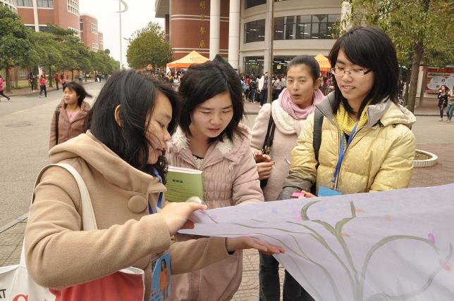 宣传版前,同学们络绎不绝,纷纷前来观看雷锋事迹与安全知识;并且染上五颜六色的颜料将手模按到画有树干的“大树”上,以示支持雷锋精神和安全教育的宣传。更值得一提的是,刘苗老师和杨思佳老师在百忙之中抽空,参加我们的活动。在活动的尾声,老师和同学们在五彩缤纷的大树上按下手模,为本次活动画上圆满句号。