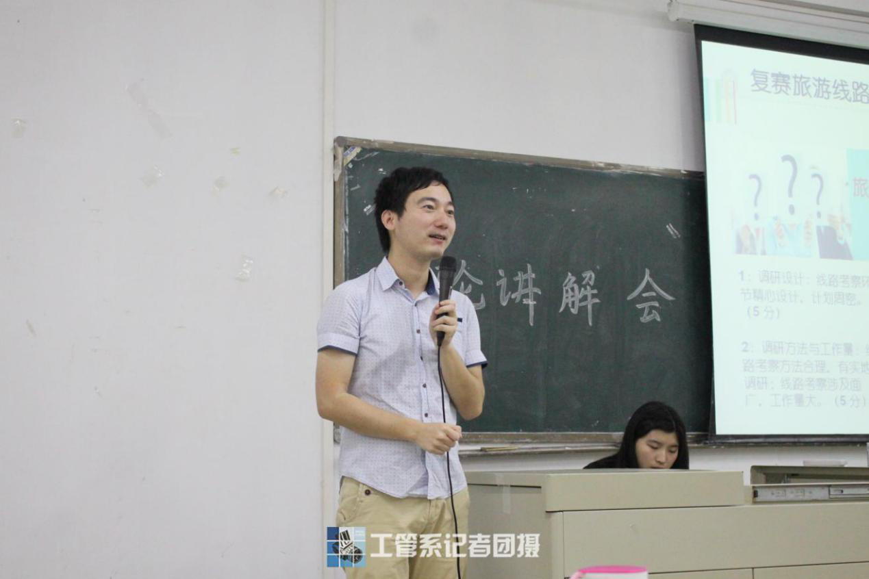 2017年5月11日19点,由工商管理系主办的第五届“金马杯”旅游线路策划大赛第二轮讲解会在励志楼B302圆满举行。本次讲解会分成比赛要求和规则讲解、复赛PPT评分讲解、专业老师讲解、金马国旅专业人员讲解以及提问环节五个流程。在主持人详细介绍了比赛要求和规则以及复赛PPT评分标准后,吴彬彬老师对参赛者们提出了复赛的相关建议;谭灿棠总监则从市场分析、线路考察与采购、产品组合、主题元素与焦点等方面为同学们带来精彩的讲解。在互动环节,金马旅行社谭总监和阎德峰副总经理热情解答参赛选手的种种疑惑。最后,在热烈的掌声下,本次讲解会圆满结束。
