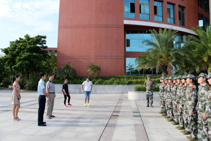 接着,我系主任一行走访了中央广场篮球场军训场地,详细地向教官了解了我系学生的军训情况,针对军训病患伤员情况,特别叮嘱做好学生工作,提前预测军训可能发生的紧急情况,切实保障同学的安全。同时对教官表达了敬意和感激。