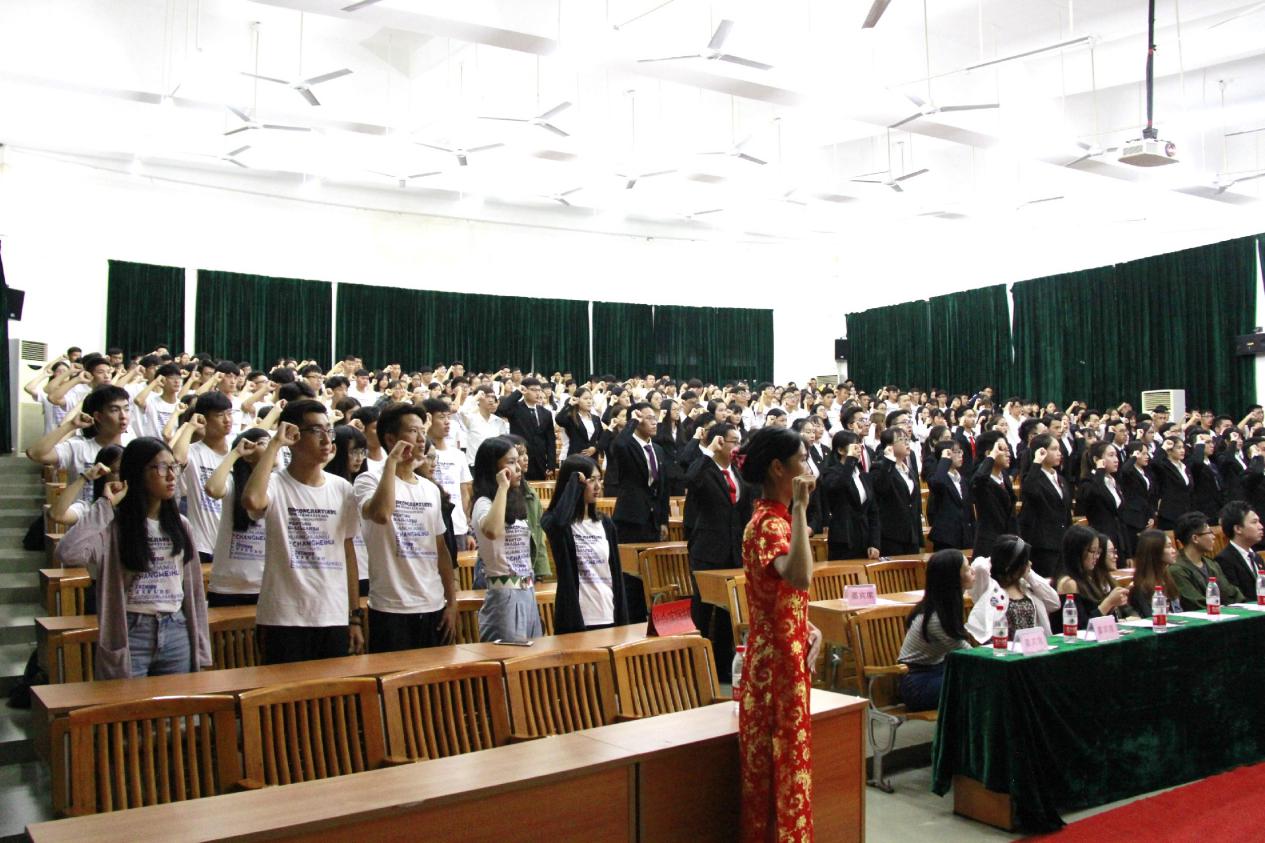 2017年10月19日傍晚17:45经济管理学院经济与金融系团总支·学生会·记者团宣誓大会在励志楼c208庄严举行。