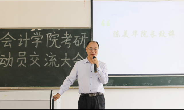 大会伊始,陈美华院长首先上台致辞。他主要围绕“要不要考、怎么考、考什么、考不考得上”四个问题,结合自身经历和体会讲述了考研的重要性。陈院长表示,面对21世纪信息爆炸,人才竞争激烈的新时代,学生要有更高的精神追求,努力提高学历水平和专业素养。能考得上研究生的人通常智商较高,学习自觉勤奋。因此,是否拥有研究生的文凭就变成了求职过程中用人单位衡量学生能力的的指标之一。假如拥有这个文凭,会比本科生多了一些就业机会和平台。