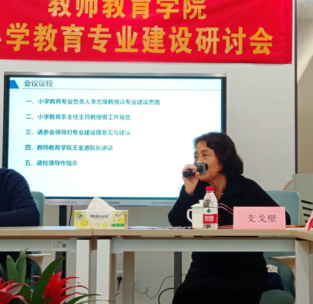 文学院蒋家国副院长在发言中针对小学教育专业未来发展提出来以下建议:定位要准确;立足现实,先办小学教育专业语文方向和小学教育专业数学方向,兼音、体、美等。