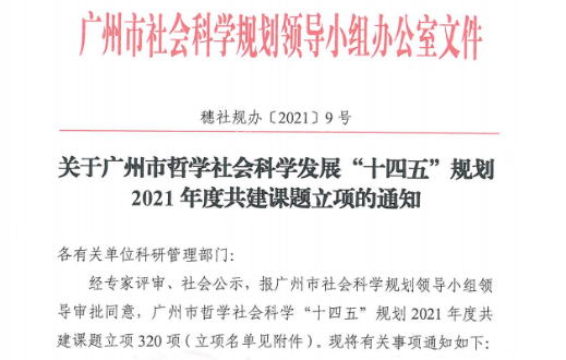 图11:周合强老师负责的2021年广州十四五社科项目