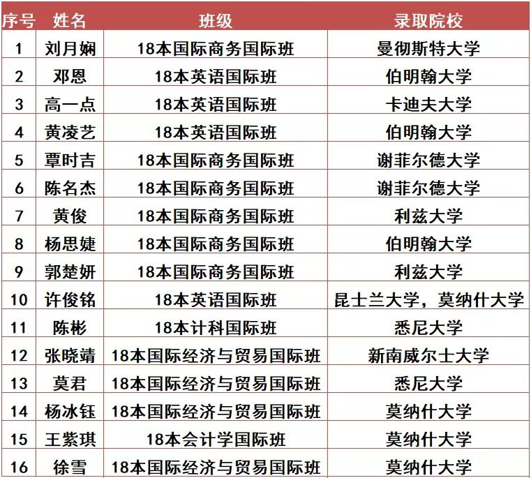 华商3044永利集团登录2022届毕业生考研再传捷报,截至发稿为止,“3+1”中英双学位国际班及“2+2”中澳双学位国际班的30名应届毕业生中已有16名被海外知名高校录取,升学率为53.3%。在此对这些同学表示热烈的祝贺。