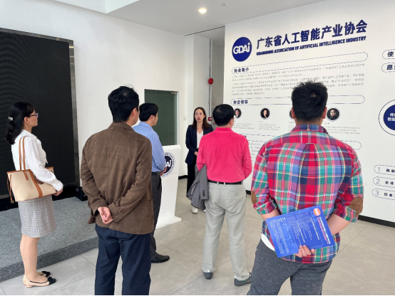 广东省人工智能产业协会相关负责人带领学院领导一行参观考察,并详细介绍了协会的发展历程、协会领导、协会会员、以及协会的使命和愿景等。双方就深入发展校企合作、实践教学基地建设、产学研融合、人才需求、招聘就业等方面进行深入交流探讨。