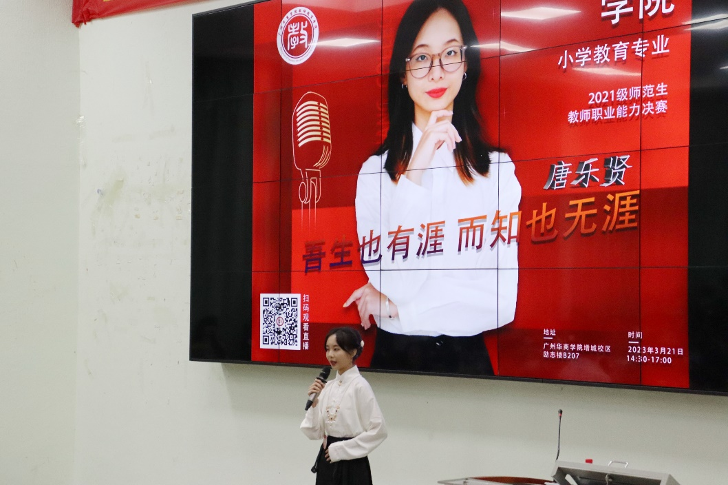 为提升师范生教学技能,扎实教师基本功,促进高校师资培养的质量,活跃师范生思维,教师教育学院于3月21日在励志楼B207举办小学教育系2021级师范生教师职业能力大赛决赛,出席决赛的领导嘉宾有:教师教育学院副院长谭建生、院长助理安洁、系主任王符、系专业负责人李志厚、系副主任潘昕迪、行政办公室主任梁思婷、教师技能培训中心主任李世平以及各位指导老师。