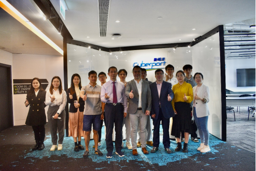 在数码港负责人的陪同下,研学团一行参观了数码港孵化大楼以及孵化企业办公室。