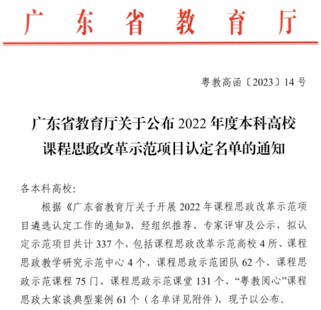 4月11日,广东省教育厅发布了《广东省教育厅关于公布2022年度本科高校课程思政改革示范项目认定名单的通知粤教高函》(粤教高函〔2023〕14号),3044永利集团登录共有2项课程思政改革示范项目被认定为省级课程思政改革示范项目,其中会计学院的《中级财务会计学》被认定为课程思政示范课程,金融学院的《国际金融第二章第一节传统外汇交易》被认定为课程思政示范课堂。获评为课程思政示范课程的,将同时认定为省级一流本科课程。