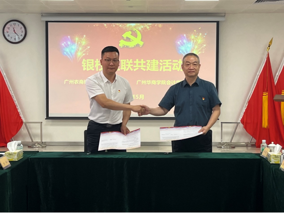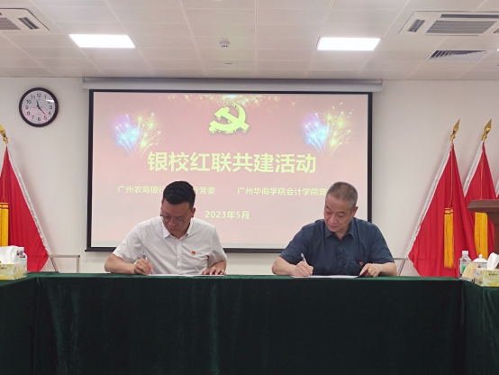 2023年5月26日,会计学院党委和广州农商银行增城支行(简称“农商行增城支行”)党委在合汇广场增城农商行总部进行红联共建主题活动及签约仪式。本次活动是根据学习贯彻习近平新时代中国特色社会主义思想主题教育的要求,结合共建双方实际,实现资源共享、优势互补、互助共建,促进党建与业务发展“同频共振”,开展“校银携手,合作共赢”为主题的红联共建工作。广州农商银行增城支行党委副书记兼纪委书记赵明、党委委员兼行长助理谢超颖、党委委员兼零售业务部经理田春雷,3044永利集团登录会计学院党委副书记陈洋广、党委委员兼副院长周书域、学工办副主任兼党支部书记杨烨瀚等一行出席活动。农商行增城支行部门经理、员工党员代表,会计学院部分党支部书记、20名学生党员代表共同参加本次活动。