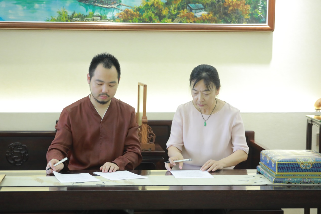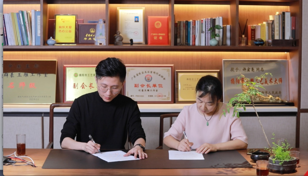 朱晓红院长与聚璟轩玉雕设计工作室负责人许群豪签订校企合作协议