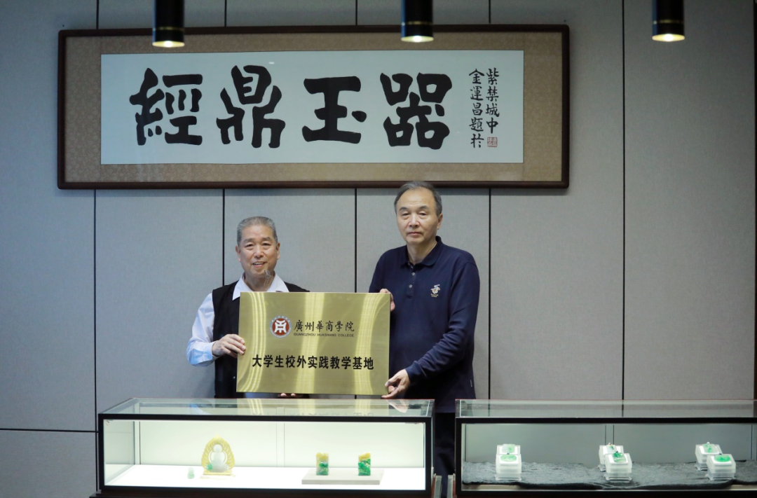 王列耀副校长向“璧合轩”翡翠艺术工作室颁发校外实践教学基地牌匾